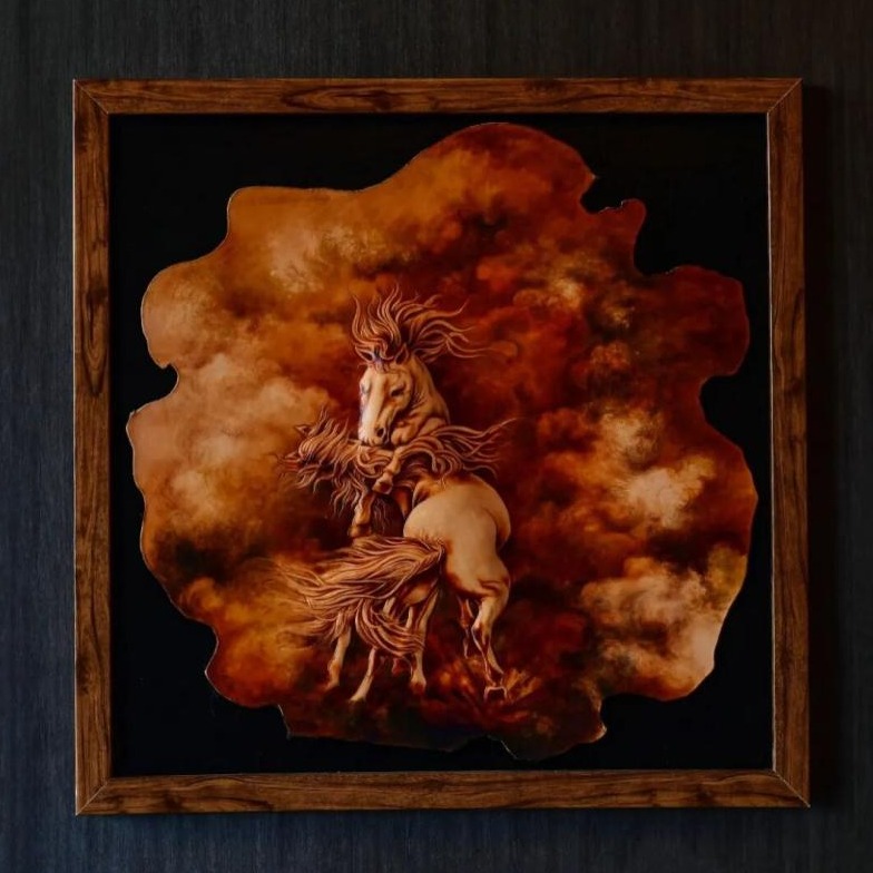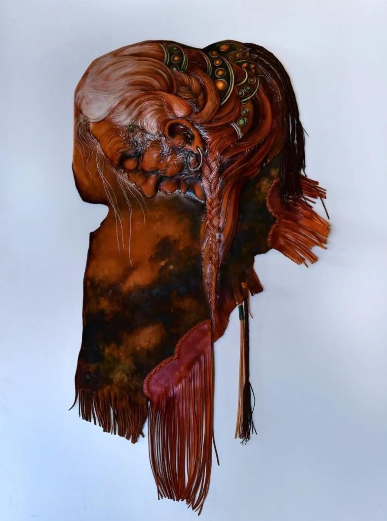 “民族的,才是世界的?!备峦哒驹谧髌非?,目光深沉。2015年,嘎瓦的《醉草原》系列作品走進了法國盧浮宮參展。法國藝術(shù)家對作品中的馬鞍、祥云等圖案印象深刻,東西方文化的交流碰撞也使得嘎瓦后續(xù)創(chuàng)作中運用更加鮮艷的色彩。透過一方皮革,世界看到了中國皮雕藝術(shù)的精妙絕倫,也初見了匠心背后流動的文明密碼。