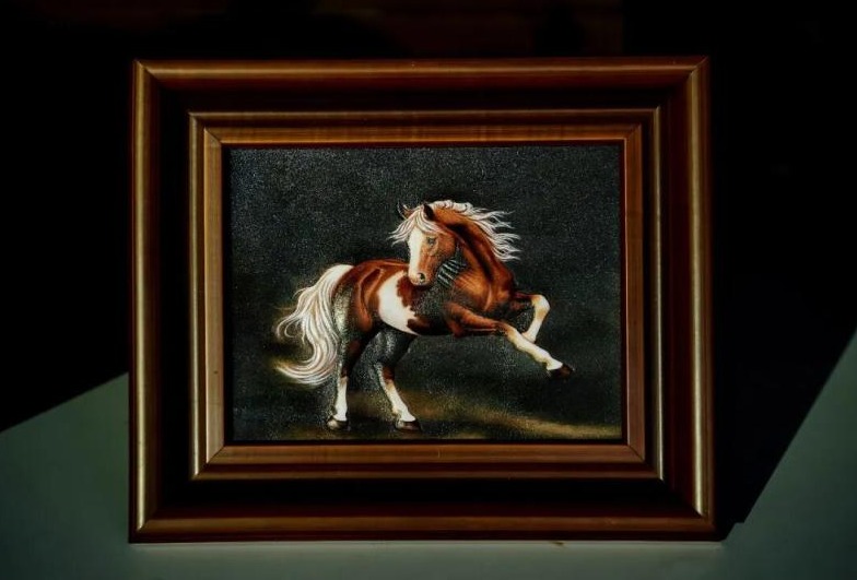 工作臺前,一塊未完成的皮革,上面的駿馬輪廓初現(xiàn)。嘎瓦坐定后,拿起工具一點點在皮面上敲。