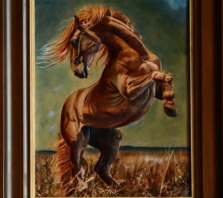 二樓工作室,國家工藝美術(shù)行業(yè)藝術(shù)大師、科爾沁皮雕畫市級代表性傳承人嘎瓦低頭專注手中的畫稿,鉛筆在紙上流暢游走,勾勒出駿馬鬃毛的每一絲細節(jié)。這是他2026年的第一幅作品,專門為馬年創(chuàng)作的皮雕畫?!拔蚁矚g馬,沒理由地喜歡。我的畫里一直有馬,馬一出現(xiàn),我作品的靈魂就有啦!”他的聲音低沉而堅定。