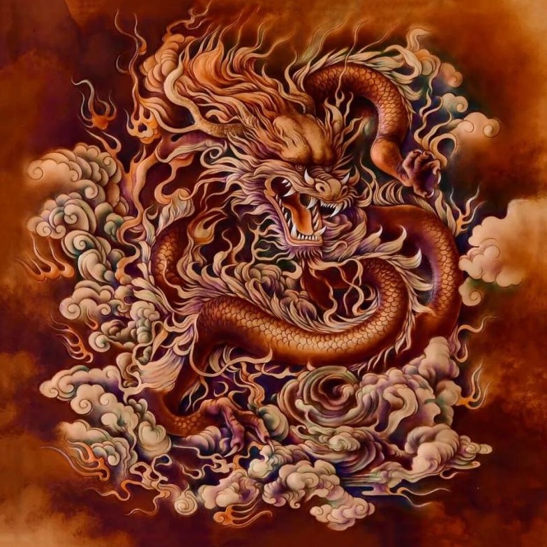 展廳屋頂上,一幅色彩濃烈的皮雕畫復(fù)制圖吸引著駐足仰望的人。這幅名為《盛世歡歌》的皮雕畫已被中國木雕博物館收藏,生動再現(xiàn)通遼兒女對祖國母親深深的愛。作品中的中國龍、華表、黃山、鼎、牡丹花、祥云等元素,寓意著祖國欣欣向榮、繁榮富強。