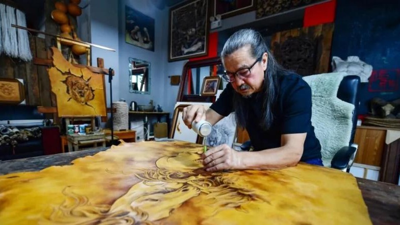 十多年前,沒人想到這個曾經(jīng)的流浪畫家會成為科爾沁草原上皮雕藝術(shù)的“引路人”。