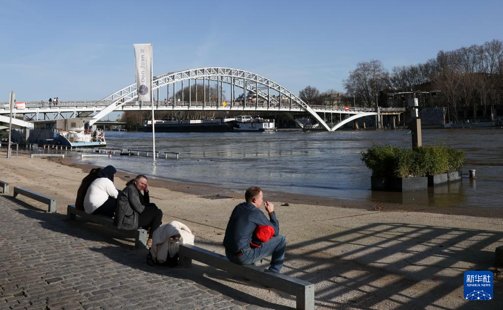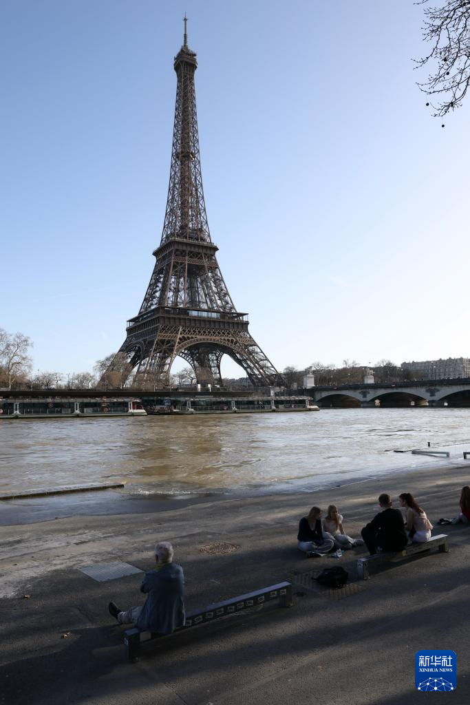 2月25日,在法國(guó)巴黎,人們?cè)谒簧蠞q的塞納河畔休閑。